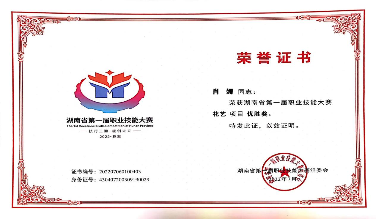 榮獲湖南省第一屆職業技能大賽花藝項目優勝獎