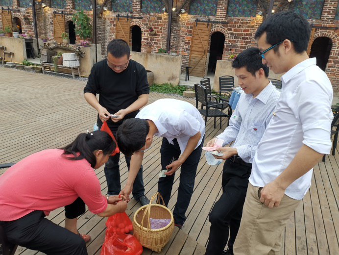 系黨總支書記陳斌同志:“今天是我們的主題黨日,我們在出發前為每名黨員測量體溫,檢查健康碼,督促大家戴好口罩并做好消毒工作,做好個入防護、文明消費,安全消費。黨員干部要發揮模范先鋒作用,帶頭用主動消費抹去疫情為經濟帶來的創傷,也給商家增加信心,我們鼓勵大家在經濟能力承受范圍之內買買買。”話說完,陳書記也加入了采購土雞蛋的熱潮中。