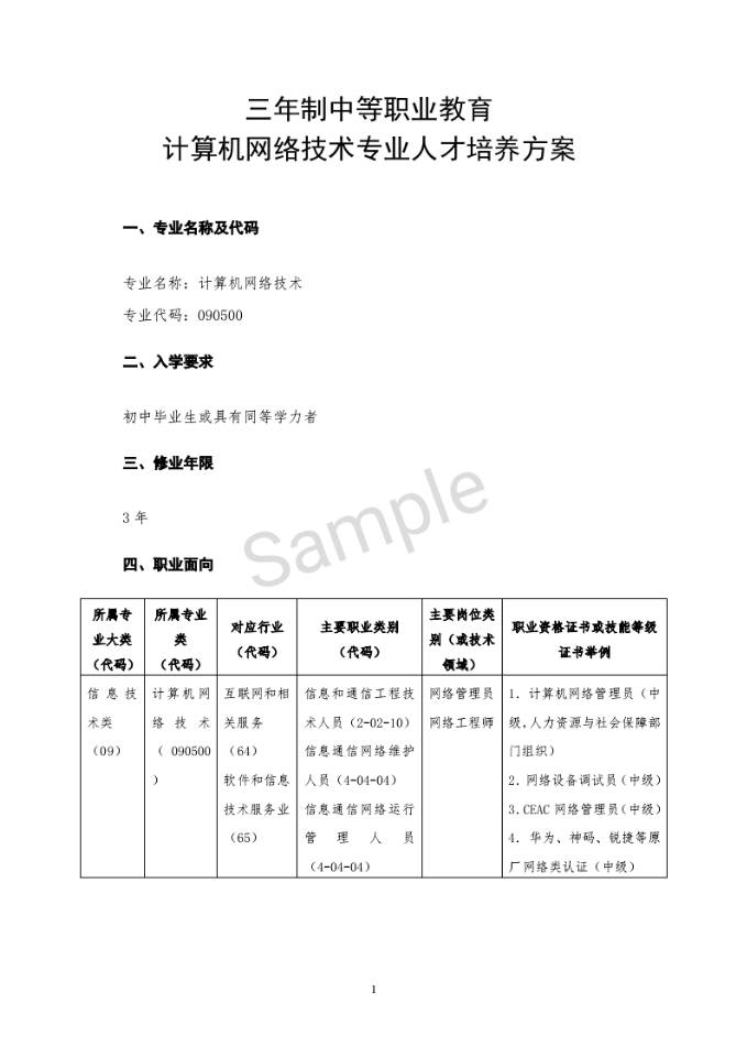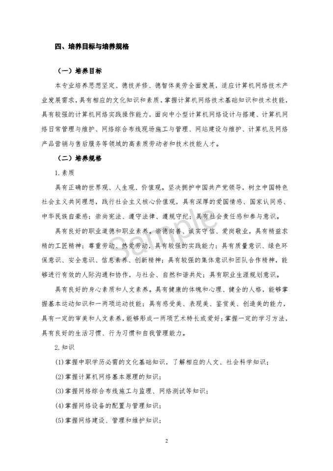計算機網絡技術專業人才培養方案