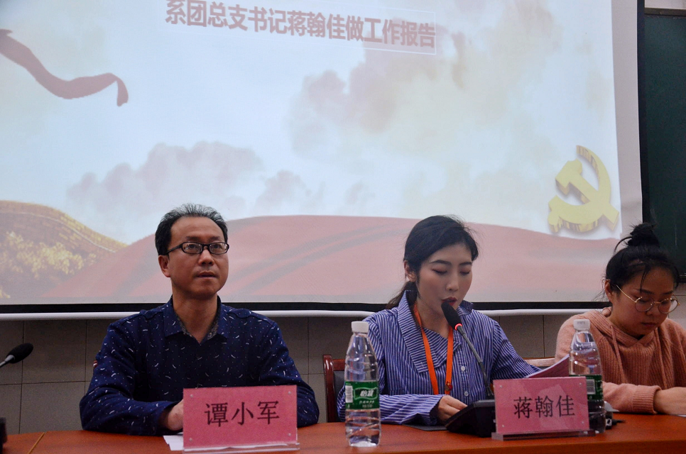 會上,系黨總支書記譚小軍作總結講話。他號召廣大團員青年深入貫徹學習黨的十九大精神和共青團十八大精神,堅持黨的基本路線,用建設習近平新時代中國特色社會主義理論武裝全團,努力加強和推進團的自身建設。要求團員青年要在學習和實踐中成長進步,要在求實和奮進中建功立業,要在追求和奉獻中再創佳績!