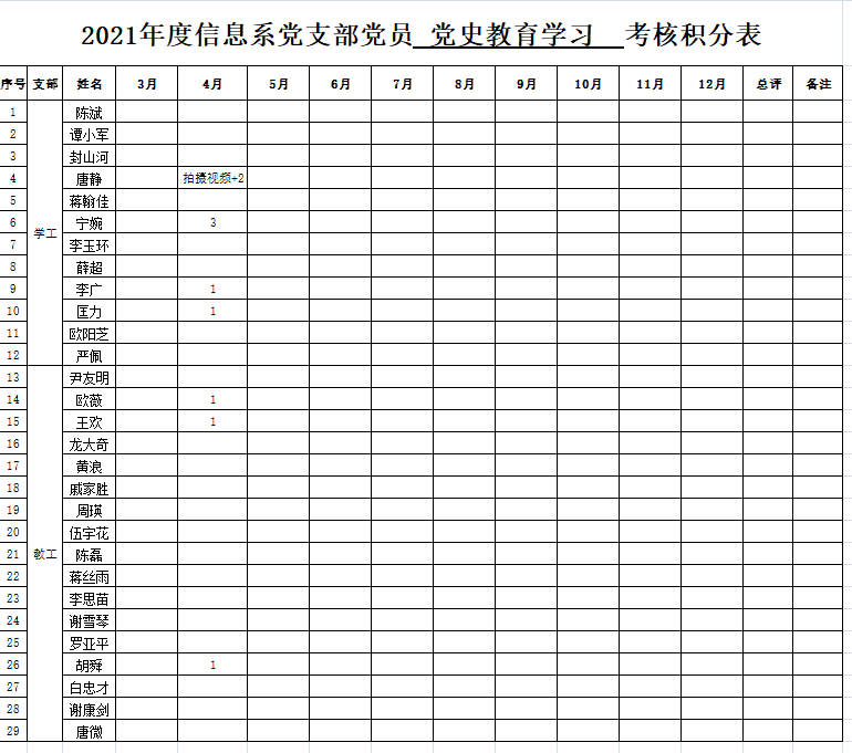 4月29日下午,信息系黨總支用放假時(shí)間組織開(kāi)展“學(xué)史增信”專(zhuān)題學(xué)習(xí)研討、黨史活動(dòng)工作安排和黨員考核制度討論會(huì)。這一天的下午,全院師生均已放假,但信息系黨總支黨員們?nèi)詧?jiān)守崗位繼續(xù)艱苦學(xué)習(xí)黨史。在“學(xué)史增信”專(zhuān)題學(xué)習(xí)研討會(huì)上,黨總支書(shū)記譚小軍主持會(huì)議,譚書(shū)記對(duì)本周的黨史學(xué)習(xí)情況做了總結(jié),對(duì)參加黨史學(xué)習(xí)教育活動(dòng)表現(xiàn)突出的同志給予表?yè)P(yáng)和肯定,為了將系部的黨史教育學(xué)習(xí)活動(dòng)開(kāi)展好,部分黨員不辭辛苦不顧身體病痛加班加點(diǎn)完成各項(xiàng)工作,尤其是寧婉、唐靜、李廣、匡力同志,他們除了完成繁重的教學(xué)任務(wù),還經(jīng)常做黨建工作和黨史學(xué)習(xí)教育活動(dòng)工作到深夜。這次研討會(huì)主要分為兩個(gè)部分進(jìn)行:一是集中學(xué)習(xí)《論中國(guó)共產(chǎn)黨歷史》、《毛澤東鄧小平江澤民胡錦濤關(guān)于中國(guó)共產(chǎn)黨歷史論述摘編》、《星星之火可以燎原》(《毛澤東選集》第1卷)等書(shū)目和篇目。二是專(zhuān)題研討,尹友明和封山河兩位黨員干部談自己的學(xué)習(xí)體會(huì),譚書(shū)記依次進(jìn)行點(diǎn)評(píng)和總結(jié)。為了更好高效開(kāi)展黨史學(xué)習(xí)教育活動(dòng),提高黨員的積極性,做到評(píng)先進(jìn)有依據(jù),完善考核機(jī)制,信息系黨總支敢為人先,走在前面,制定黨員黨史學(xué)習(xí)教育考核制度。會(huì)上進(jìn)行修訂商討,征集黨員們的意見(jiàn),一項(xiàng)項(xiàng)制度敲定落實(shí),將民主集中制貫徹其中。
