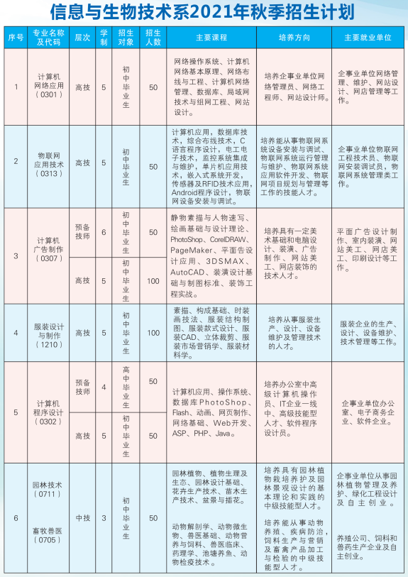 衡陽技師學院2021年秋季信息與生物技術系招生簡章