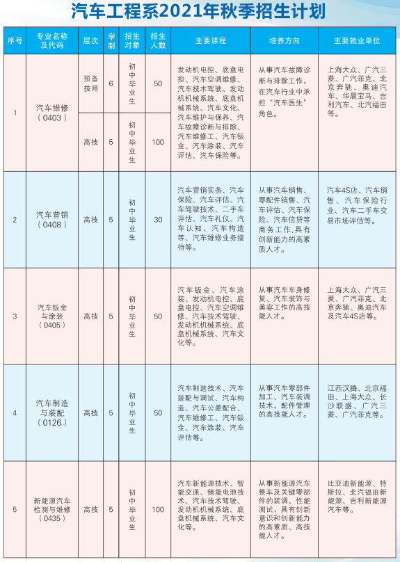 衡陽技師學院2021年秋季汽車工程系招生簡章